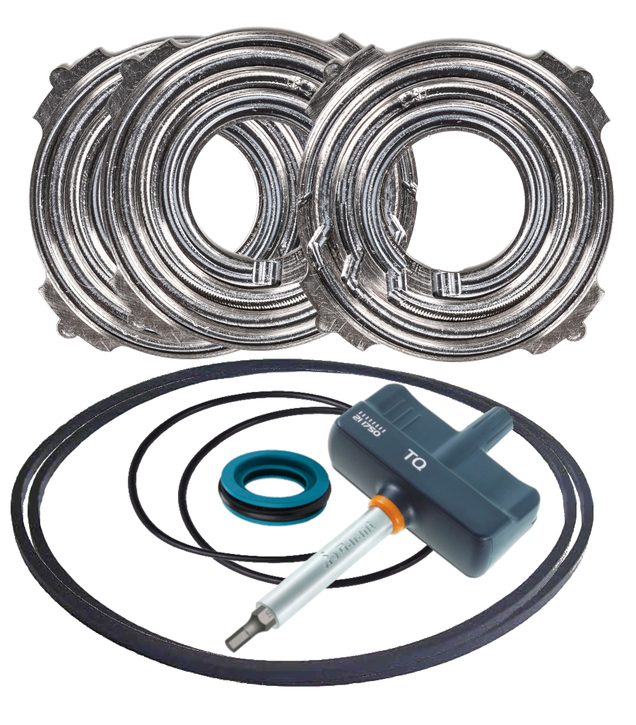 Rebuild your Spiral Stack™ 15 pump. Kit includes 2 body seals, 2 stator seals, 1 shaft seal, 3 stator discs, and fixed-torque socket driver. 4000 hour run time rated.